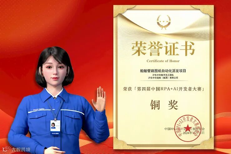 公司数字员工团队于近日获得2024第四届中国RPA+AI开发者大赛铜奖。