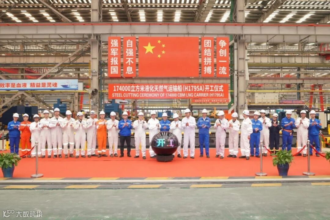 4月30日,卡能源项目H1795A船在公司新厂区联合车间举行开工仪式。商船三井(中国)公司副总经理下田盛市、上海中远海运液化天然气投资有限公司技术部副总经理吴红兵、船东监造组现场经理村中乔、ABS船级社现场经理竹建福、公司LNG副总建造师黄华兵等领导出席开工仪式。