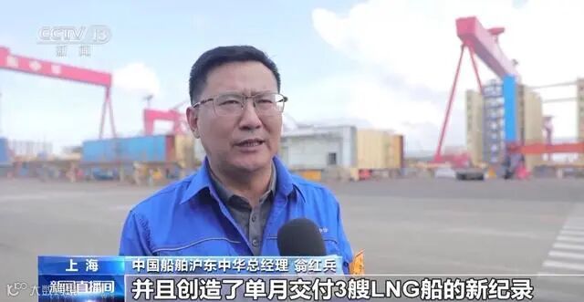 翁红兵在节目中介绍,公司前三季度大型LNG运输船已经交付5艘,并且创造了单月交付3艘大型LNG船的新纪录。未来5年的生产任务基本饱满,生产线表已经排到了2030年左右。