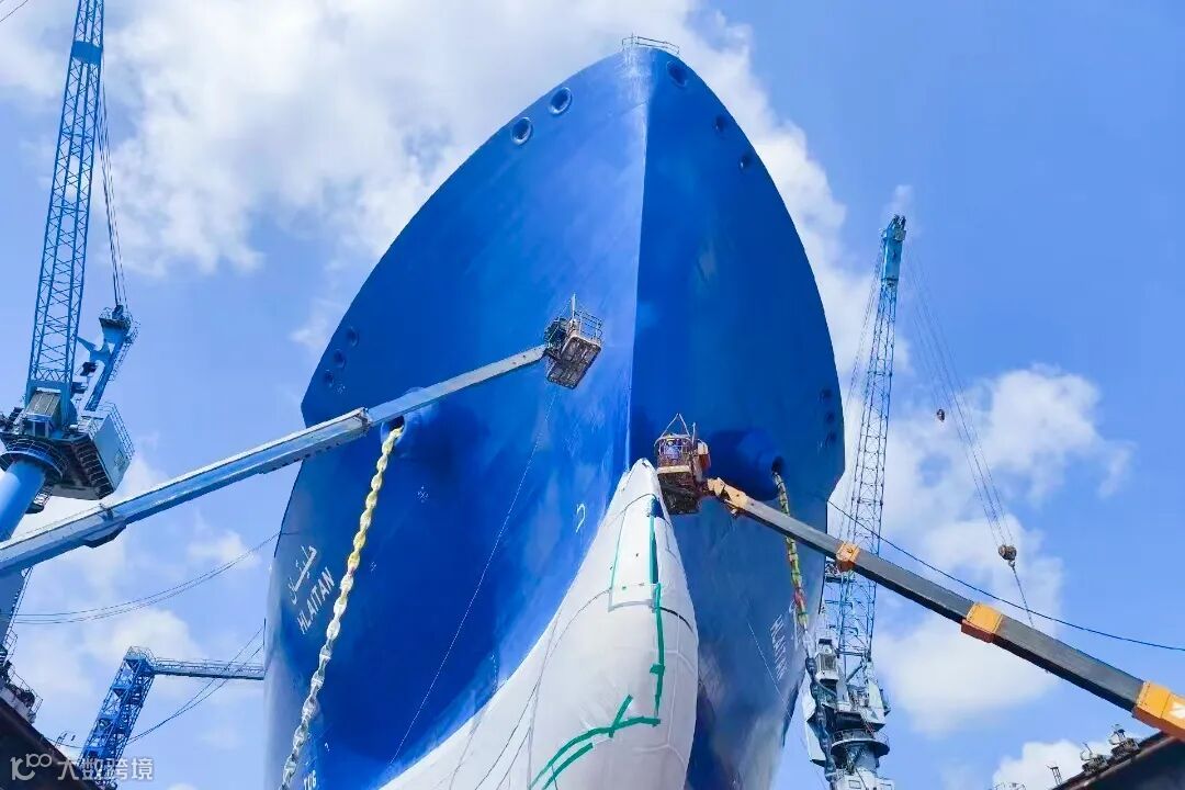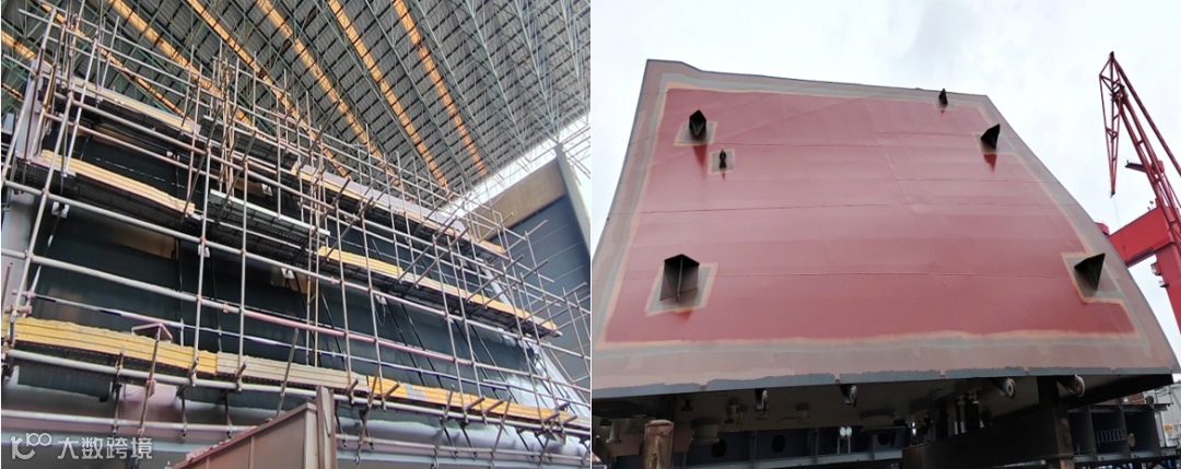 ▲分段外板无脚手施工推进