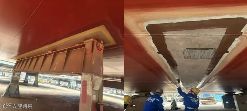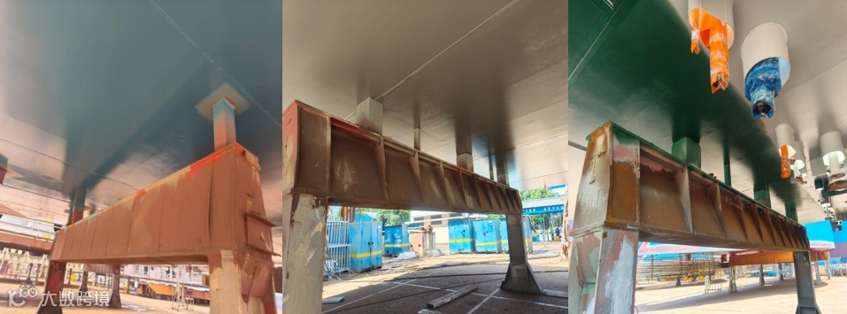 一是改进分段门架处涂装施工,在分段进冲砂前,把分段抬高,保持间隙25厘米以上,分段外板区域就可以和分段一起冲砂一起油漆一起报验,省时省力省流程,留到船坞的工作也会随之减少。