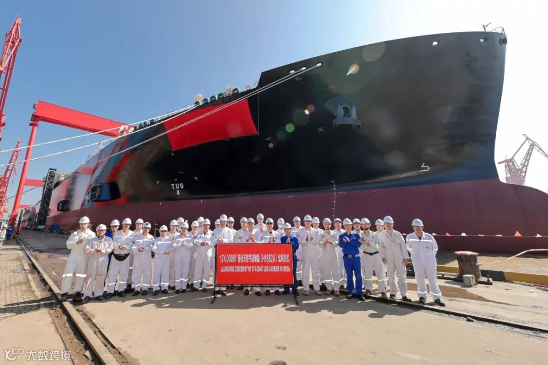 10月18日,公司长兴岛西部厂区2号船坞一派繁忙景象,2艘第五代17.4万方LNG船完成出坞大节点。在拖轮的缓缓牵引下,中海油H1882A船和卡能源二期H1798A船安全驶出船坞,另2艘大型LNG船半船完成起浮移位作业。公司四船并建、两船出坞、两船起浮的盛景再度上演,继续保持平均2个月10天左右完成一批次船出坞的节奏,确保公司LNG船产能倍增战略稳步推进。