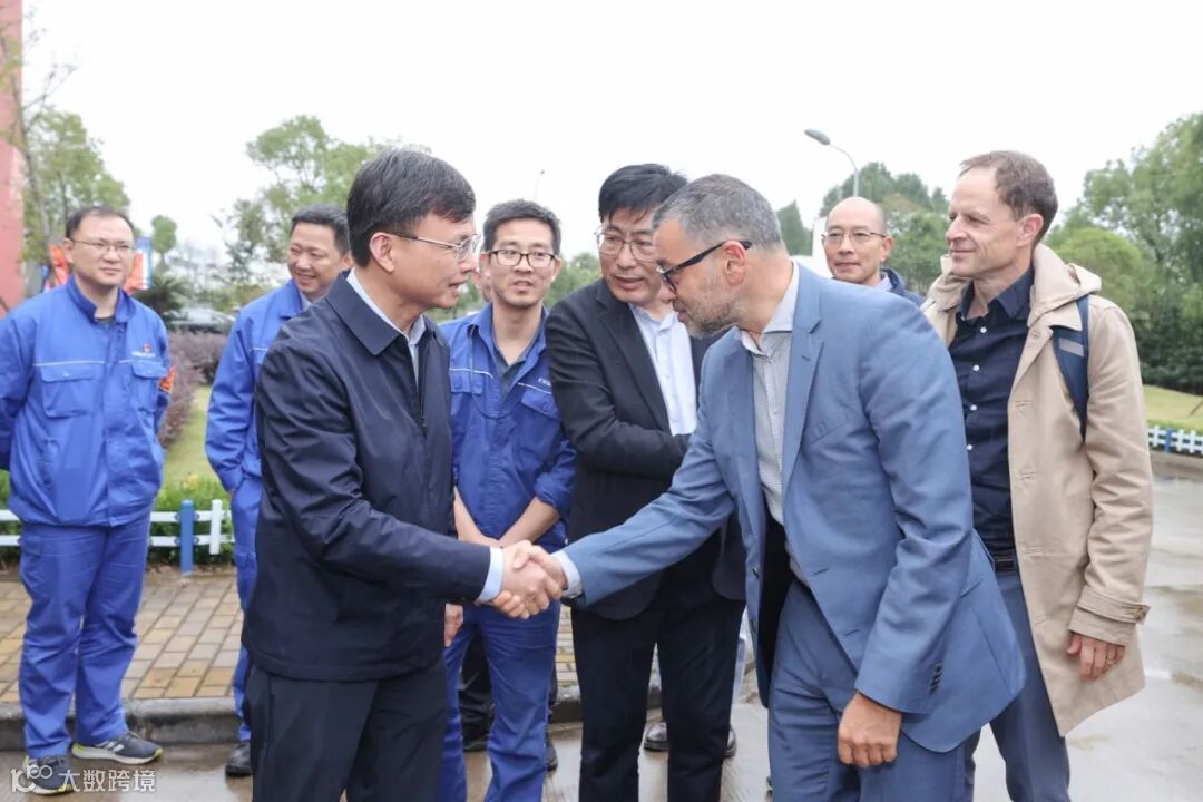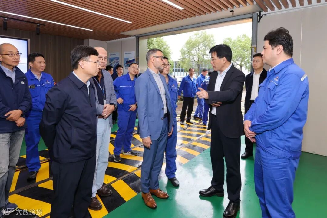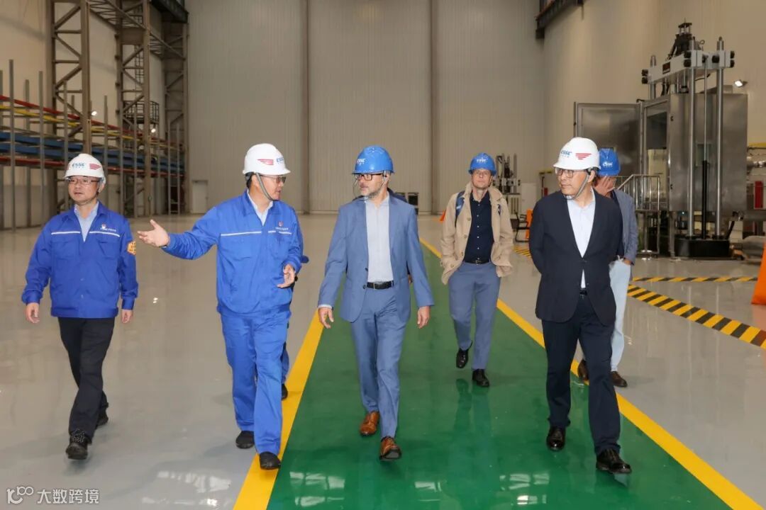 Cryostar董事长Zouaghl Samuel Malik Pierre、总经理Dambach Roger、营销经理Alain Deleplace一行在公司董事长陈建良、副总经理郑豪陪同下实地考察公司泵塔、低温阀门、低温管、绝缘箱等生产现场。