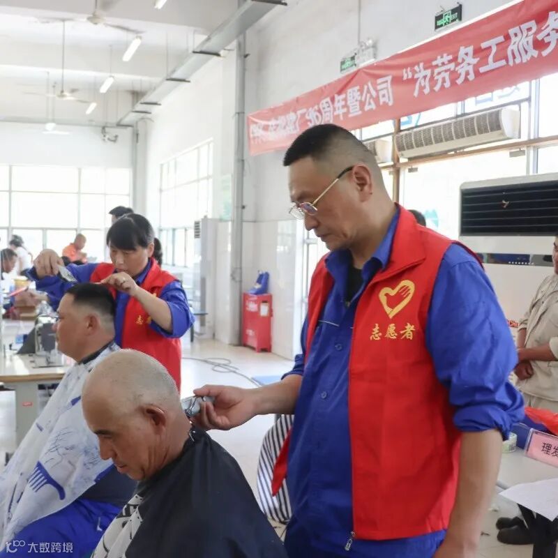 公司郭明义爱心团队志愿者为员工免费提供理发、手机贴膜、缝补衣服、助动车维修等服务;上海新华医院长兴分院派出医生在东部厂区为员工提供免费健康咨询、测量血压、内外科问诊等医疗保健服务。