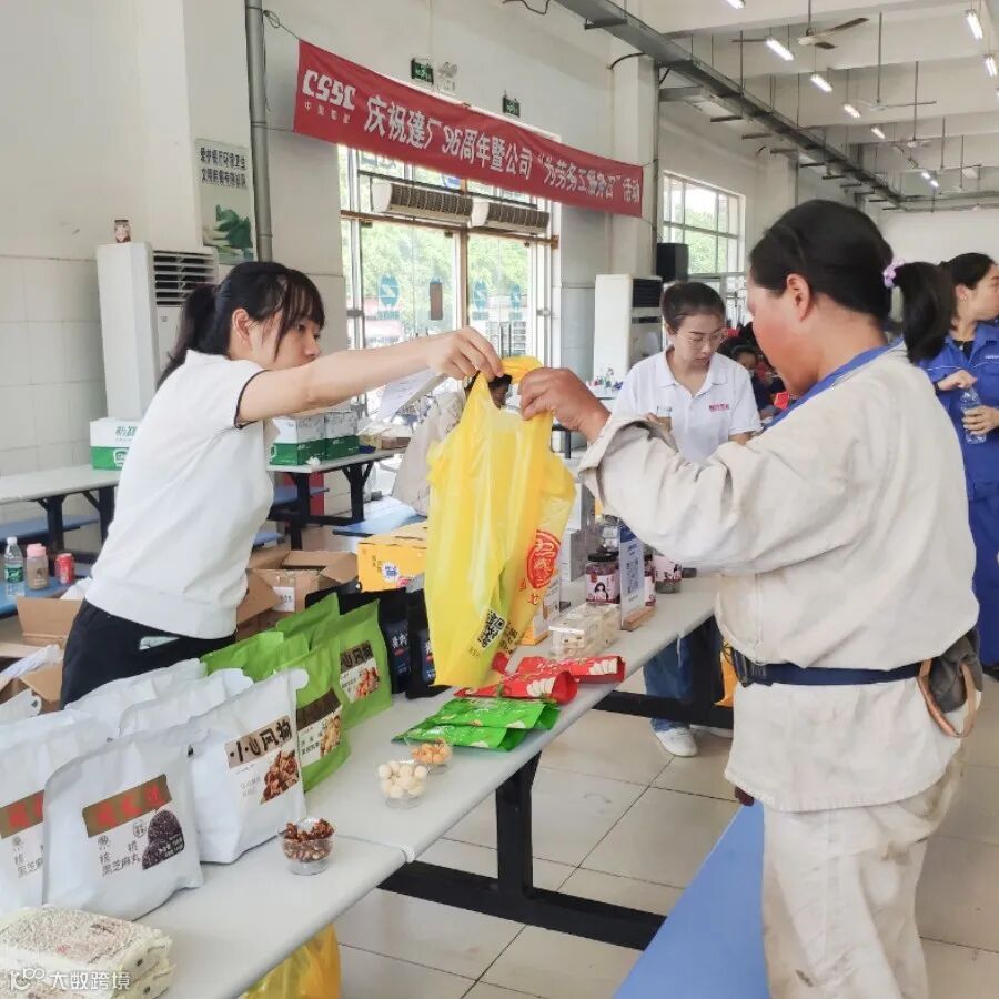 由上海闽龙实业有限公司西部厂区设置内销专场,以内销价向员工提供价廉物美的优质食品,包括坚果茶饮、南北干货、休闲食品等。