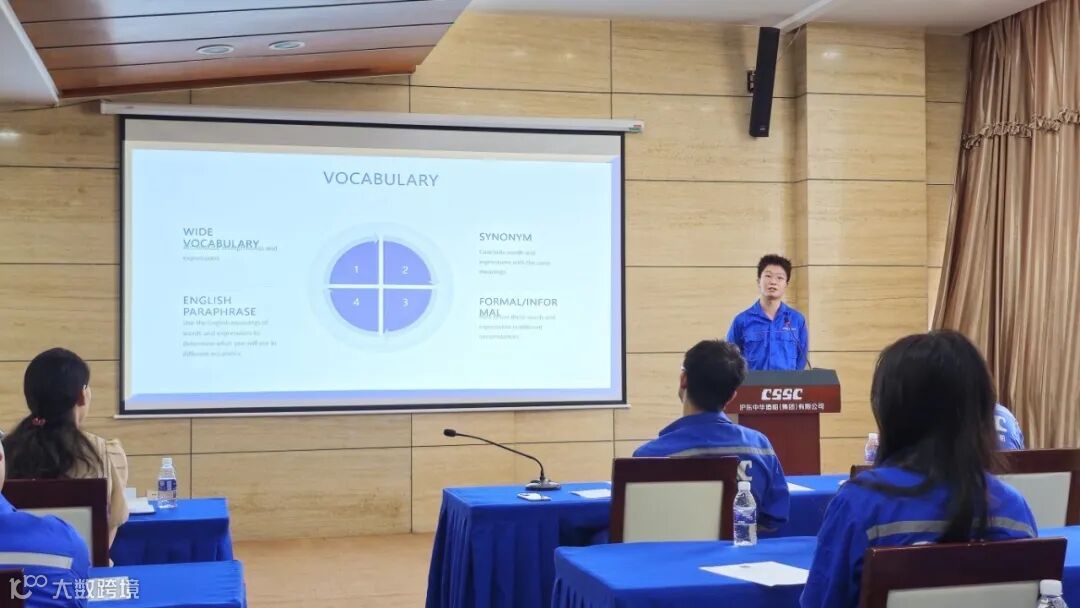 竞赛设计紧密融合船企特色,通过风采展示和比武两个环节,全面考察参赛选手的英语“听说读写”能力。风采展示环节中,参赛选手结合工作实践,从学习技巧、语言表达、工作应用等多维度分享心得,生动诠释公司青年员工立足岗位、奋勇争先的精神面貌,赢得了现场观众与评委的高度赞誉。比武环节更是紧张激烈,选手们完成了商务英语听力挑战和工作场景写作实战,围绕公司国际化发展、国际贸易、商务策略等主题展示了出色的英语写作能力。评委们进行专业解读,提出宝贵建议,帮助青年人知识深化与技能提升。
