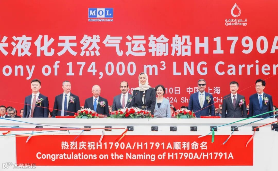 9月10日,公司与卡塔尔能源液化天然气公司在长兴岛东部厂区举行命名仪式,庆贺为“卡塔尔百船建造计划——卡塔尔北部气田扩能船舶购置项目”17.4万立方米大型LNG运输船首船“雷克斯·蒂勒森”号、2号船“乌姆·古瓦伊琳娜”号同日命名。昨日(9月9日)又新签6艘全球最大27.1万立方米超大型LNG船订单,至此,公司已累计签订卡塔尔“百船计划”中的24艘27.1万立方米超大型LNG船、12艘17.4万立方米大型LNG船订单,以载气量计,位居全球各船厂之首。