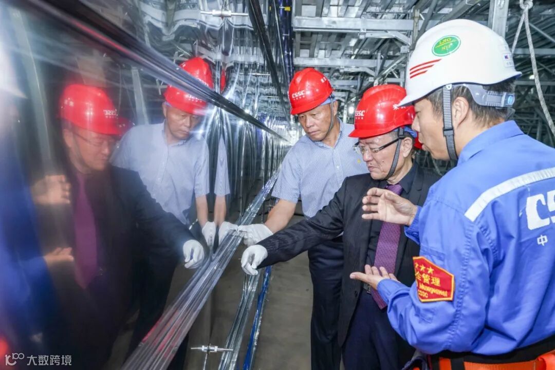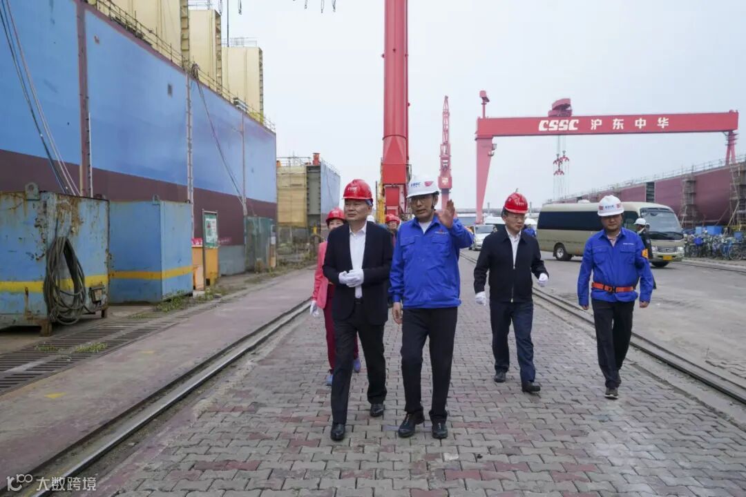 调研组现场参观了正在建造中的17.4万立方米大型LNG运输船、24000TEU超大型集装箱船,并就未来双方深化合作、航运市场和 LNG 海运市场的发展前景进行交流探讨。