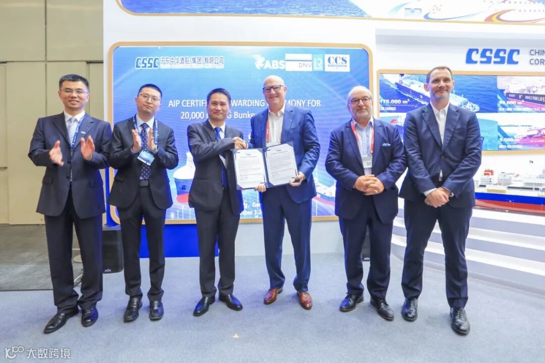 9月3日,全球最具影响力之一的德国汉堡船舶海事展览会(SMM)开幕。公司凭借低温液货储运的技术优势,及时瞄准国际碳中和发展趋势下新兴运输船市场需求,一举推出4款绿色低碳液化气体运输船船型方案,并获得四大国际权威船级社认可证书,标志公司向成为全球低温液货运输船型引领者加速奋进。公司总工程师宋炜及四大国际船级社总部高层领导出席颁证仪式。