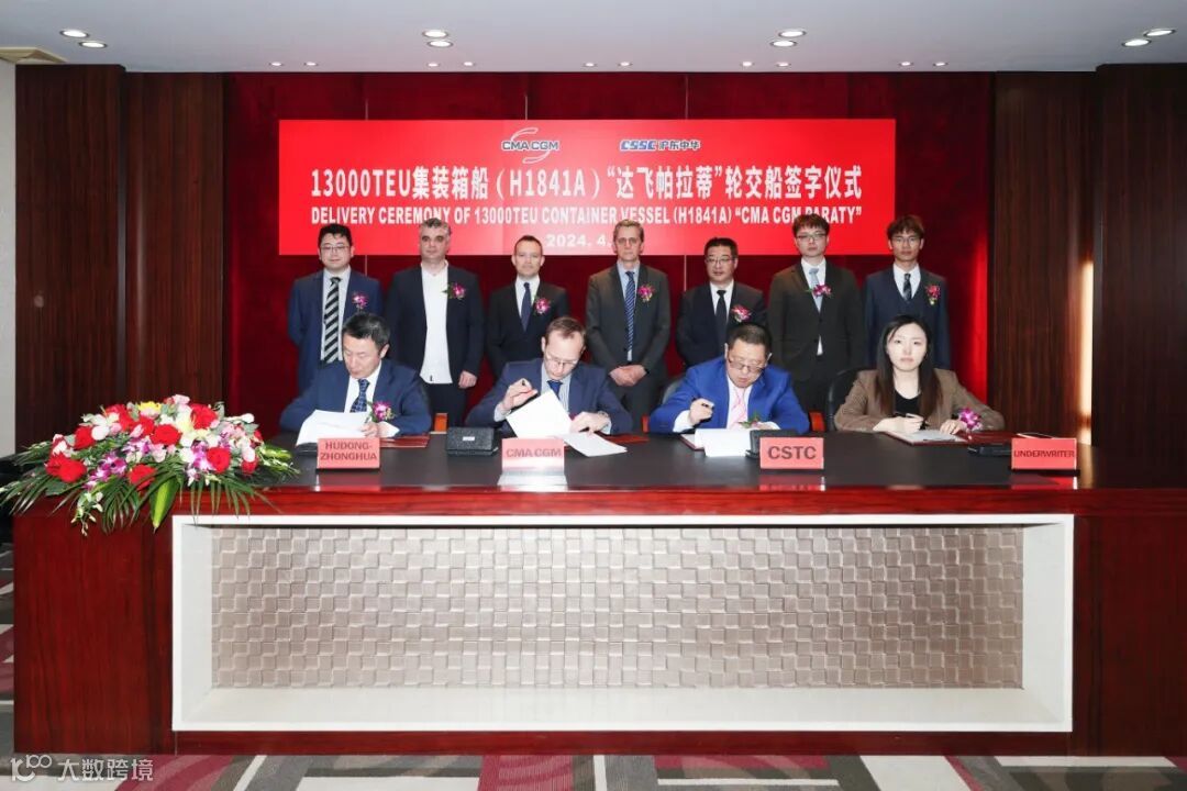 4月9日,公司建造的第三艘13000TEU液化天然气(LNG)双燃料动力大型集装箱船“达飞 帕拉蒂”号正式命名交付。南美洲东海岸航线上又将多一艘中国“智”造的大型双燃料型集装箱船,达飞船队运力得到进一步增强。该船是公司2024年交付的第四艘船舶,为全年完工20艘目标夯实基础。