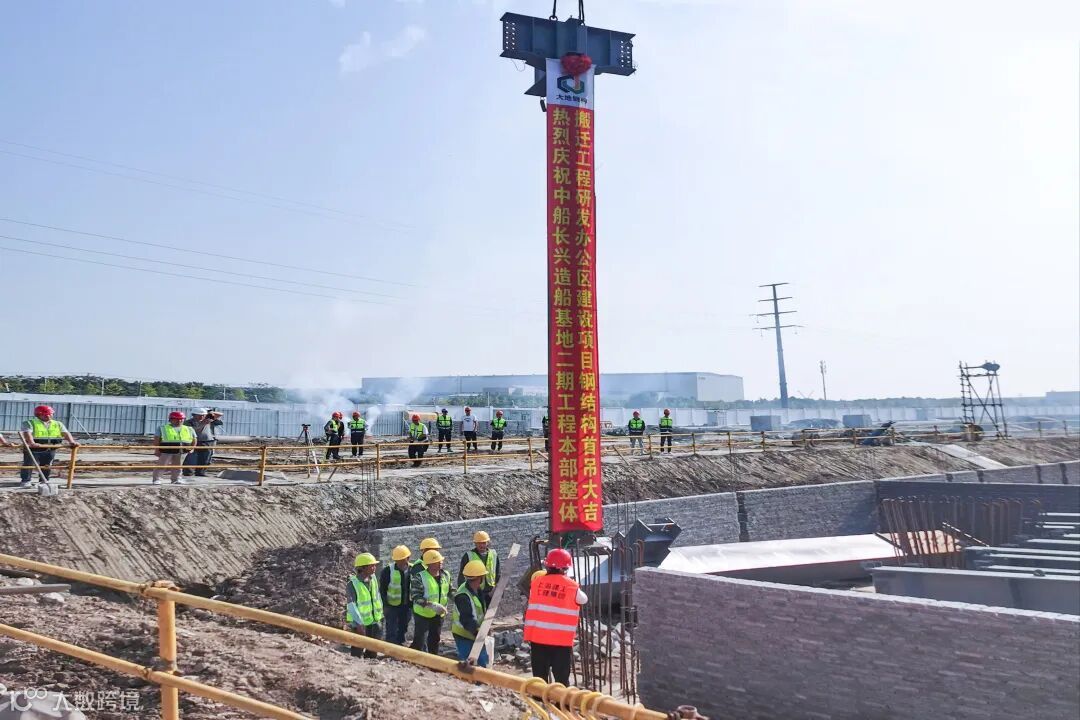 近日,长兴二期行政办公区域建设项目举行首个钢结构吊装仪式,标志该区域地下工程全面完工,地面工程建设全面启动。在建工部、监理单位、施工单位三方共同努力下,研发设计楼的首批钢结构已经完成安装,建工部表示,将紧密协调各方,努力推动项目优质高效建设。