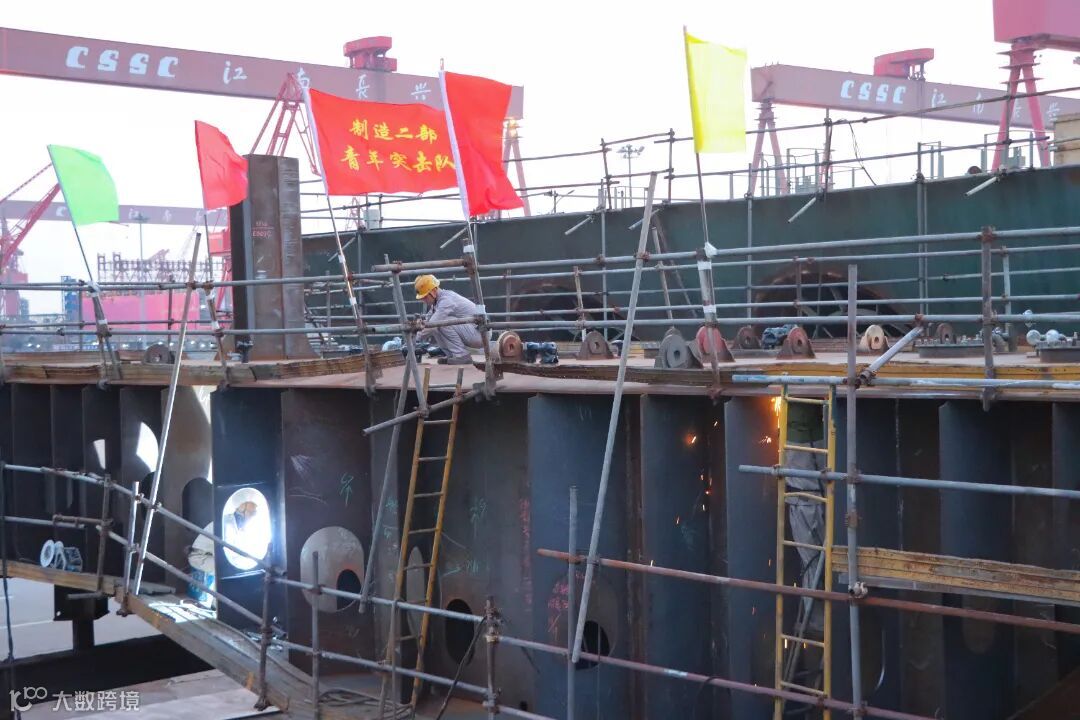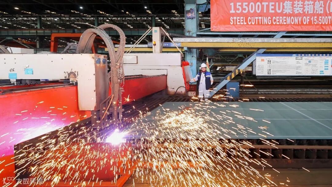 2023年收官之际,制造二部传捷报,实现年内新船开工14艘,创年度分段物量22万吨的历史最高纪录。
