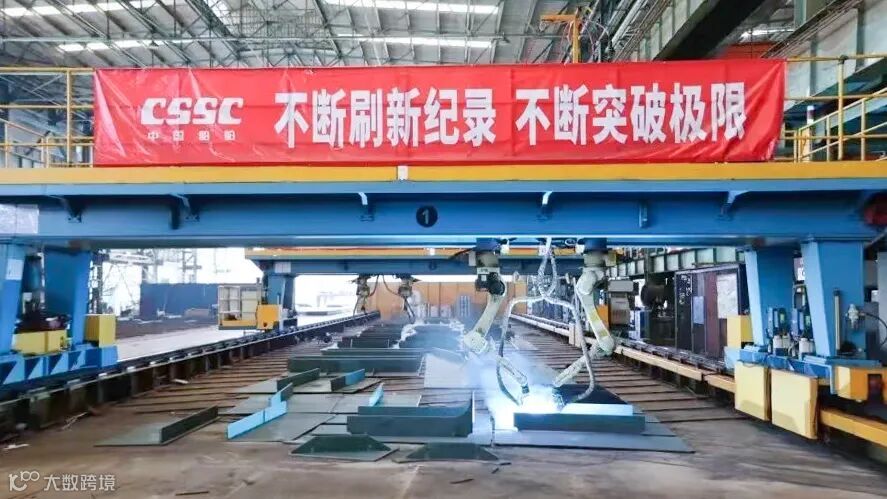 此外,部门积极推进工艺优化和创新,26项新工艺新技术得到应用,同时全方位自动焊机得到广泛应用,小组立焊接机器人焊接长度从2022年日均580米提升到今年的693米,全面提高生产效率,缩短建造周期。