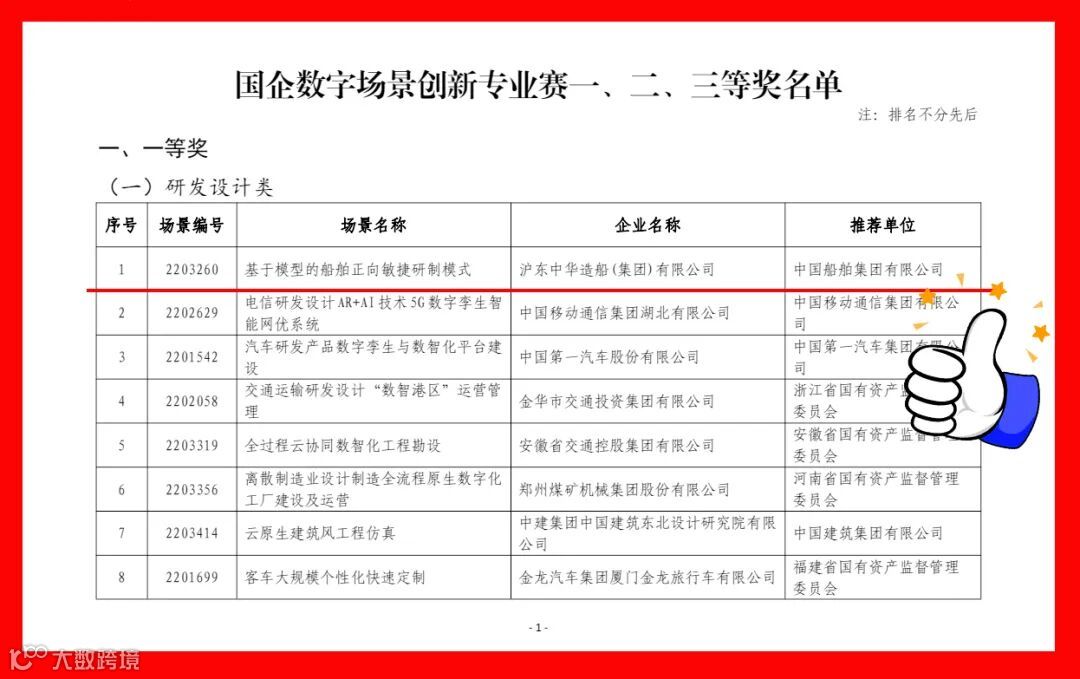 近日,公司上报的《基于模型的船舶正向敏捷研制模式》课题获首届“国企数字场景创新专业赛”一等奖。