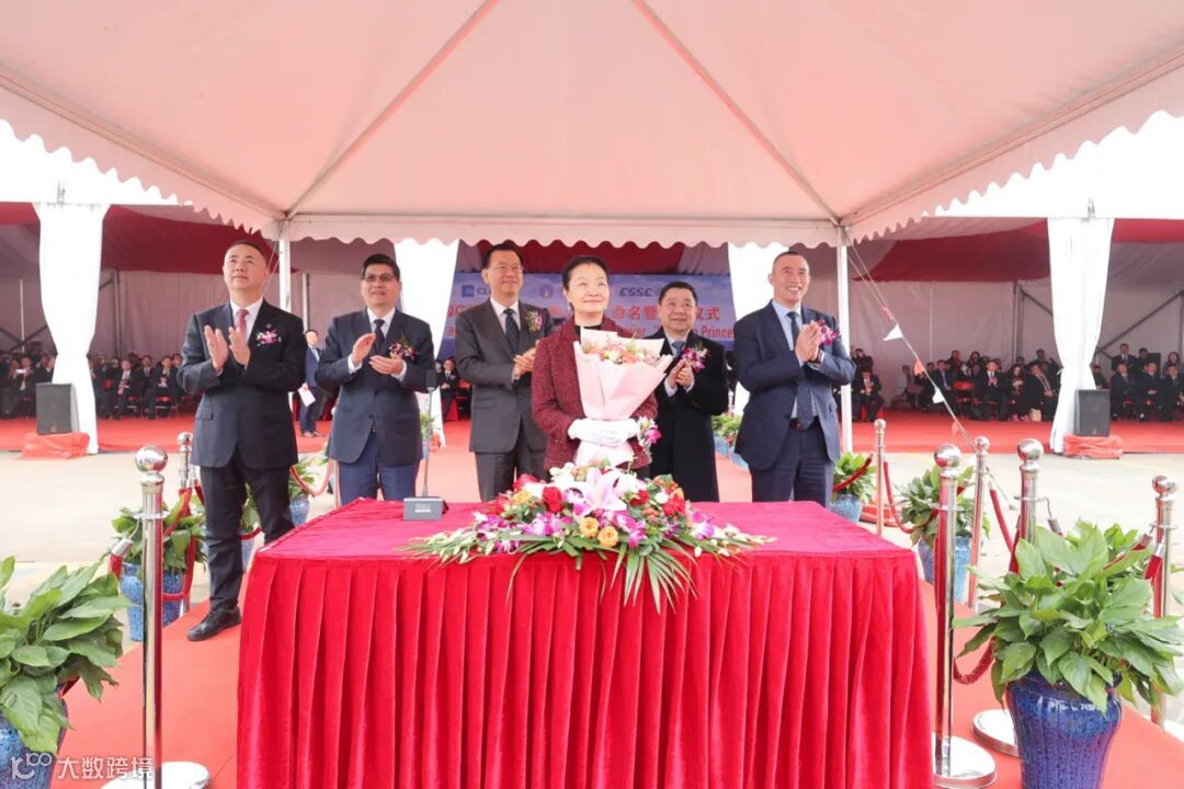 第十四届全国政协委员、深圳市政协副主席陈倩雯担任特邀嘉宾,为新船命名砍缆。深圳燃气董事长李真、中远海运能源总经理朱迈进、招商轮船副总经理徐晖、CLNG总经理丛剑、美国船级社(中国)高级副总裁艾瑞克、中国船级社上海分社总经理孟令毅、GTT(中国)总经理安南、中船贸易副总经理吴爱军,公司总经理陈军、副总经理迟本斌等180余位领导嘉宾出席交船仪式。