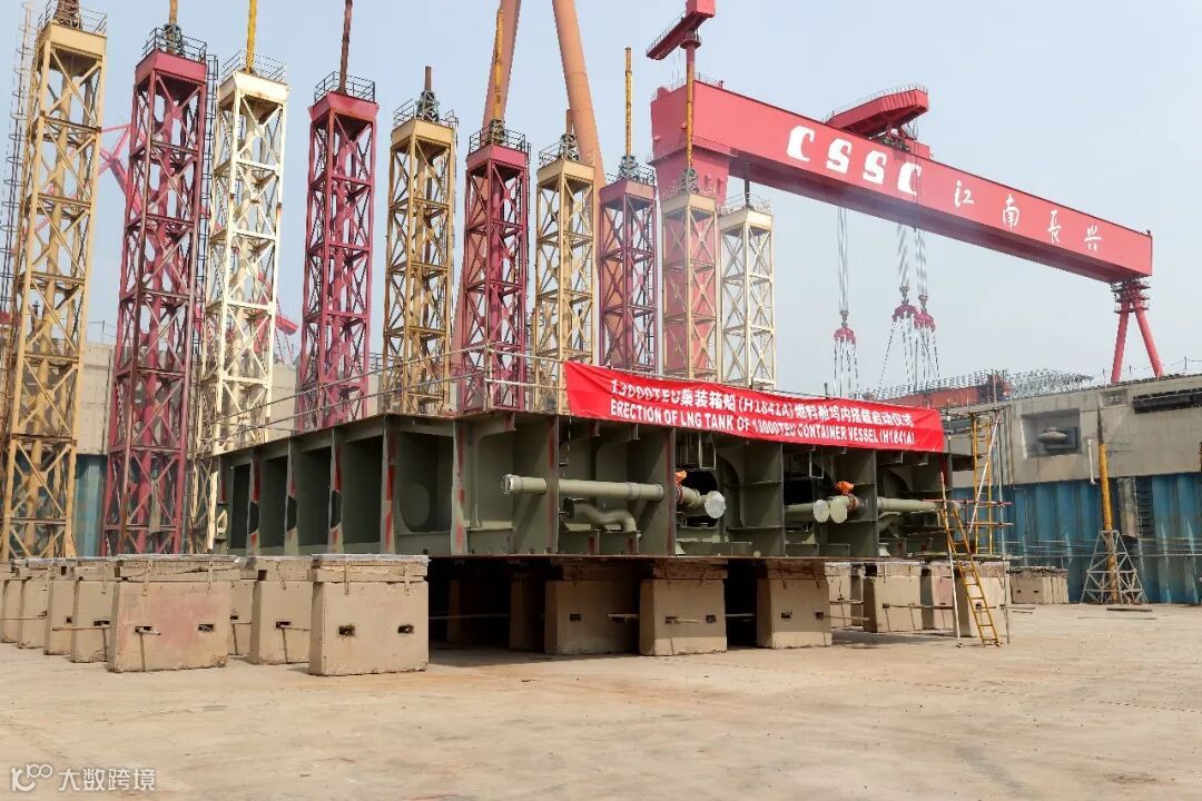 达飞驻场经理戈兰、法国船级社新造船部上海区经理穆斯塔法和驻场经理马金祥、长兴造船副总经理刘学东和潘伟昌出席仪式。两船分别为在建的一系列6艘13000TEU双燃料船的第二艘和第三艘。