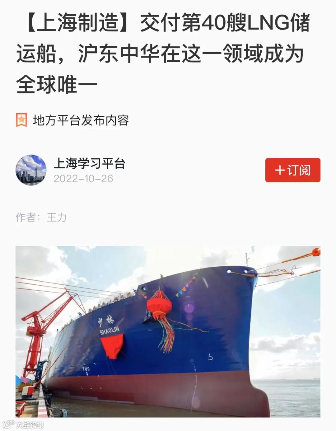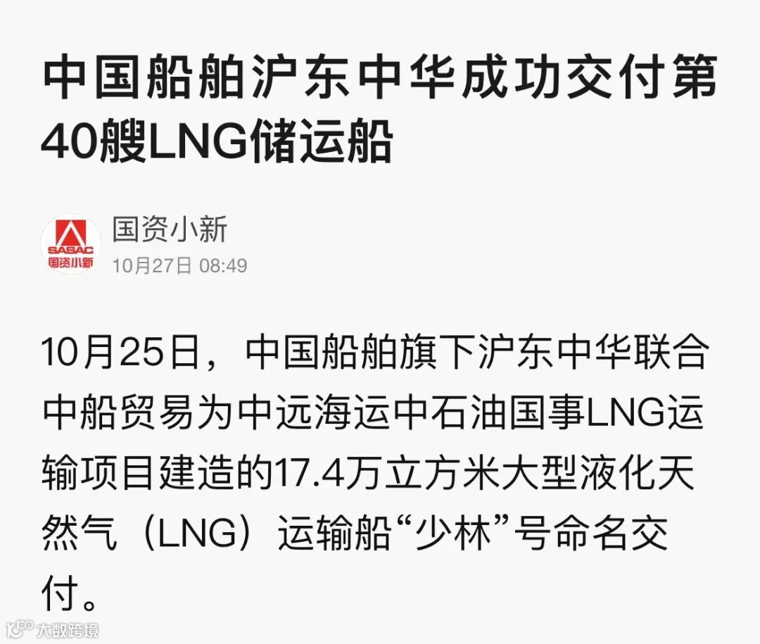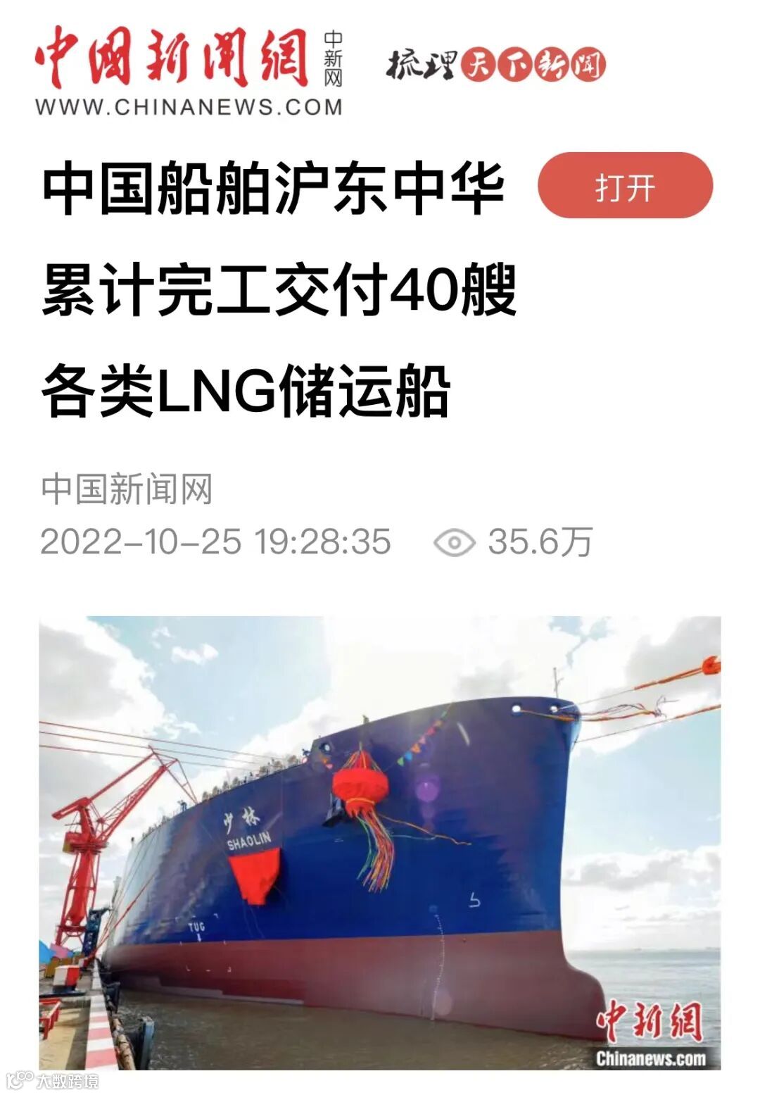 10月25日,公司建造的17.4万立方米LNG运输船“少林”号顺利交付,成为完工交付的第40艘LNG储运船(点击查看)。