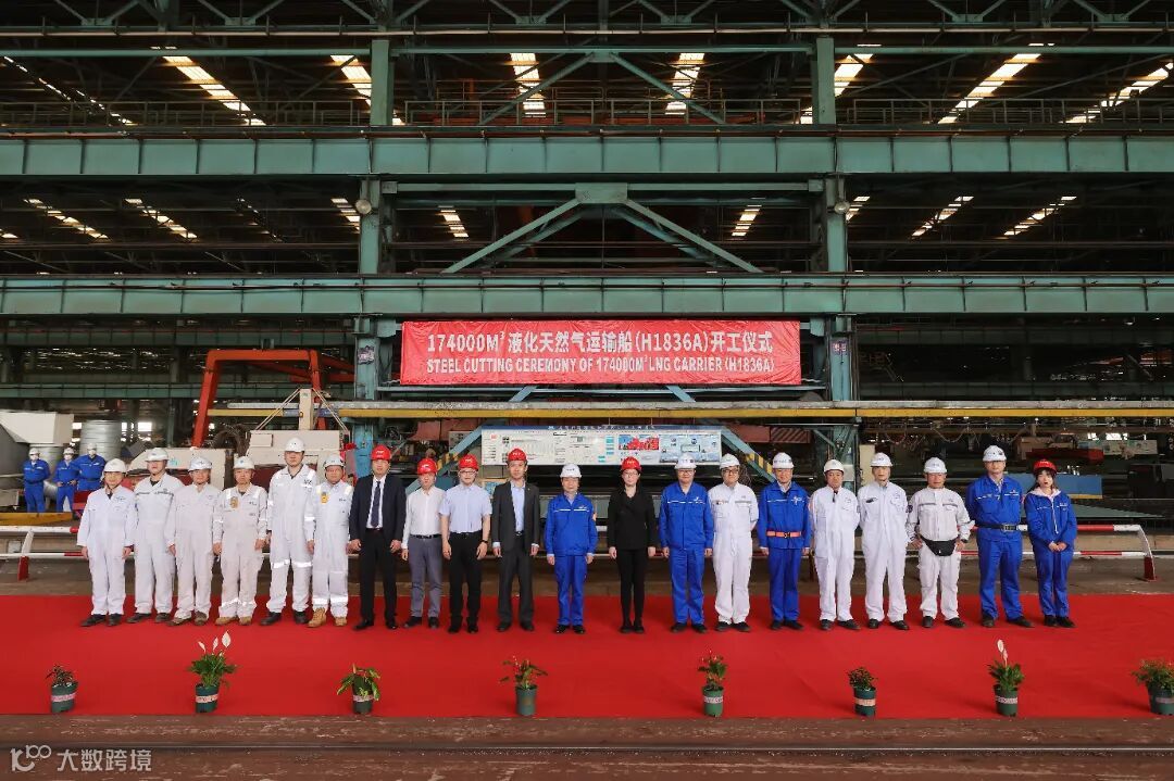4月17日下午,公司为中远海运中石油国事LNG项目建造的17.4万方LNG运输船H1836A在长兴造船基地开工。中石油国事代表王治森、柯文思,上海中远海运液化天然气投资有限公司总经理林楠,英国劳氏船级社中国东区经理朱海鲲,中国船级社项目经理章悦,公司总经理陈军、LNG总建造师何江华、营销总监沈宁等出席仪式。
