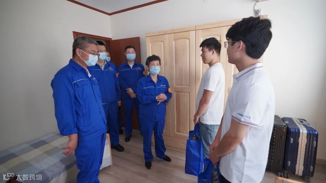 “老家是哪里的?”“刚到上海,对气候还适应吗?”“对入司报到流程和志愿者的服务有何感受?”,公司领导嘘寒问暖,为新入司员工送上精心准备的慰问品,并叮嘱迎新志愿者要热情洋溢做好各项服务保障工作,帮助新员工安心入住。