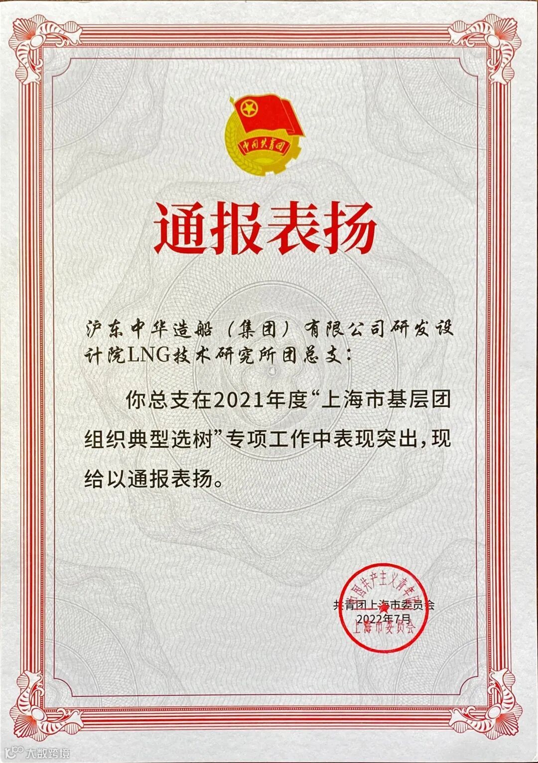 LNG技术研究所团总支被评为“上海市典型选树基层团组织”。