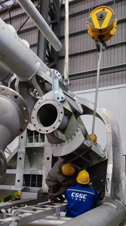 泵塔合拢管预制成功,能够大幅降低密闭空间氩气充气作业的风险,减少交叉作业对货舱同期其他工作的影响,预计可节约5天左右的围护系统建造周期。下一步,攻关组将继续进行泵塔卧式CTS系统预装试验,进一步提升泵塔预装率。