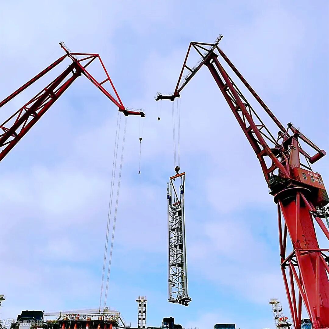 8月25日上午,总装二部承建的深圳燃气LNG船(H1837A)成功完成首个泵塔吊装。
