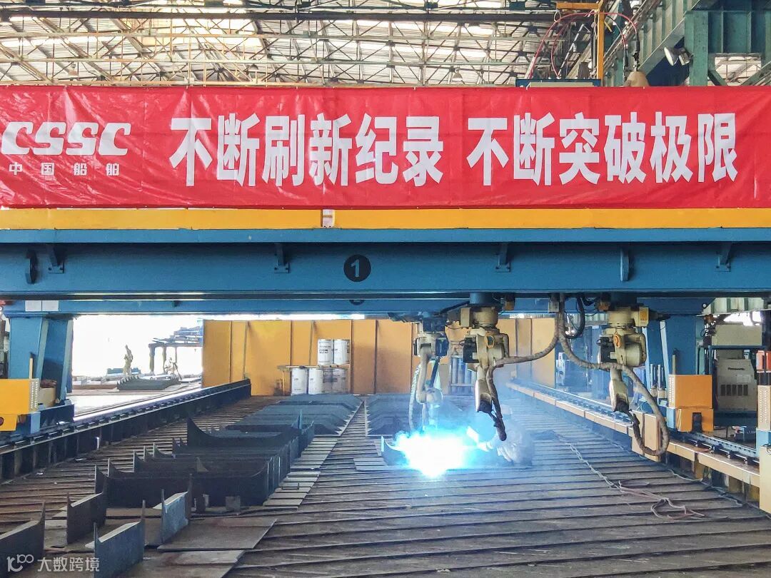 ▲ 工业机器人在船舶建造的内场焊接、外场涂装等场景已经有了较为成熟的应用基础,是提升建造效率和施工质量的有力推手。公司建立的小组立焊接机器人生产线单日焊接量最高可达650米,是角焊机产量的6倍以上。