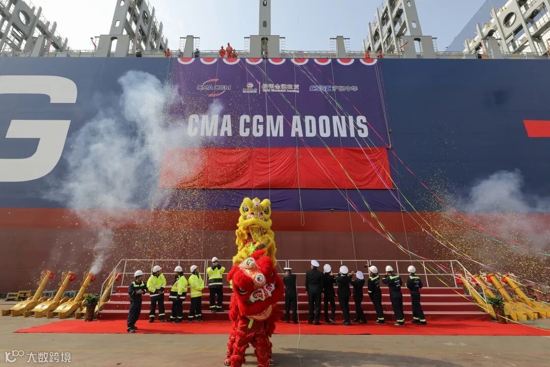 2月28日,15000TEU超大型集装箱系列船最后一艘“达飞 阿多尼斯”号顺利命名。系列船开建以来,设计建造团队夙夜匪懈、只争朝夕,持续优化生产计划,牢牢把握生产节点,确保5艘船优质高效建造,取得项目圆满收官。