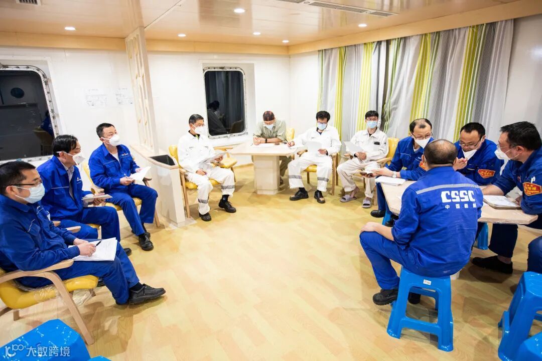 试航期间,整个项目团队和临时党支部充分发挥党建引领作用,在长兴造船副总经理刘学东的带领下,争分夺秒组织项目试验,项目进度精准把控,各环节紧密衔接,同时意见消除、书面资料整理、完工交船准备工作也同步进行。在8天试航中,脱硫装置、船舶快速性和低能耗的特点都得到充分检验,各项性能指标均优于设计要求,获得了船东高度好评。