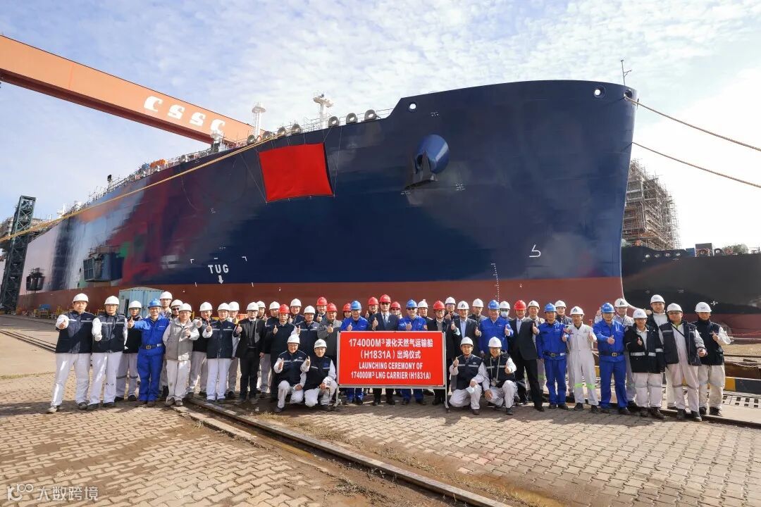 中国船舶沪东中华在LNG船建造史上又创一项佳绩!11月23日,公司长兴造船2号船坞传捷报,为中石油国事建造的174000立方米LNG项目首制船H1831A、为K LINE公司建造的79960立方米LNG船2号船H1789A顺利完成出坞节点。这是公司第一次实现2艘LNG整船同时出坞,标志着沪东中华LNG船建造效率不断提高,在世界LNG船建造领域实现从“跟跑”到“领先”的跨越。