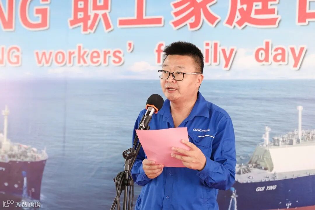 在答谢仪式上,公司LNG总建造师何江华,公司LNG船副总建造师、总装二部党总支书记左德权等对所有参与建造的职工和默默支持的家属们表示衷心感谢。