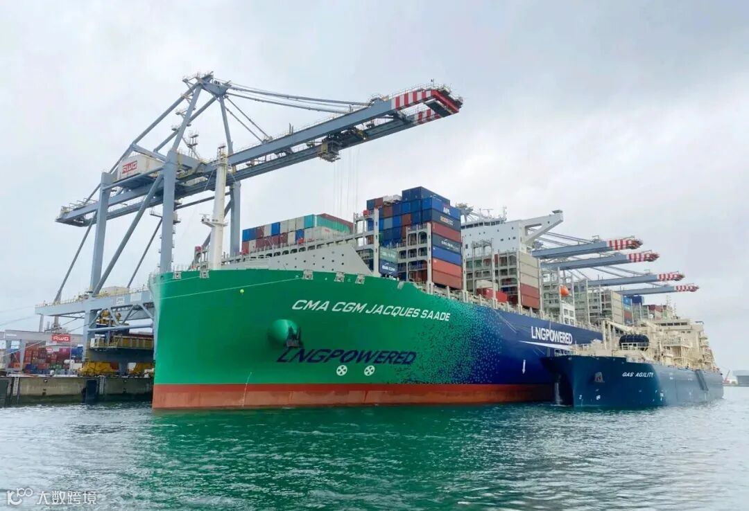 2020年11月12日,中国船舶集团旗下沪东中华“培育”的两个“世界冠军”在荷兰鹿特丹港紧密“牵手”:18600立方米LNG加注船“天然气 迅捷”号在16小时内为23000TEU双燃料动力集装箱船“达飞雅克• 萨德”号完成世界最大流量的单次LNG燃料加注服务。