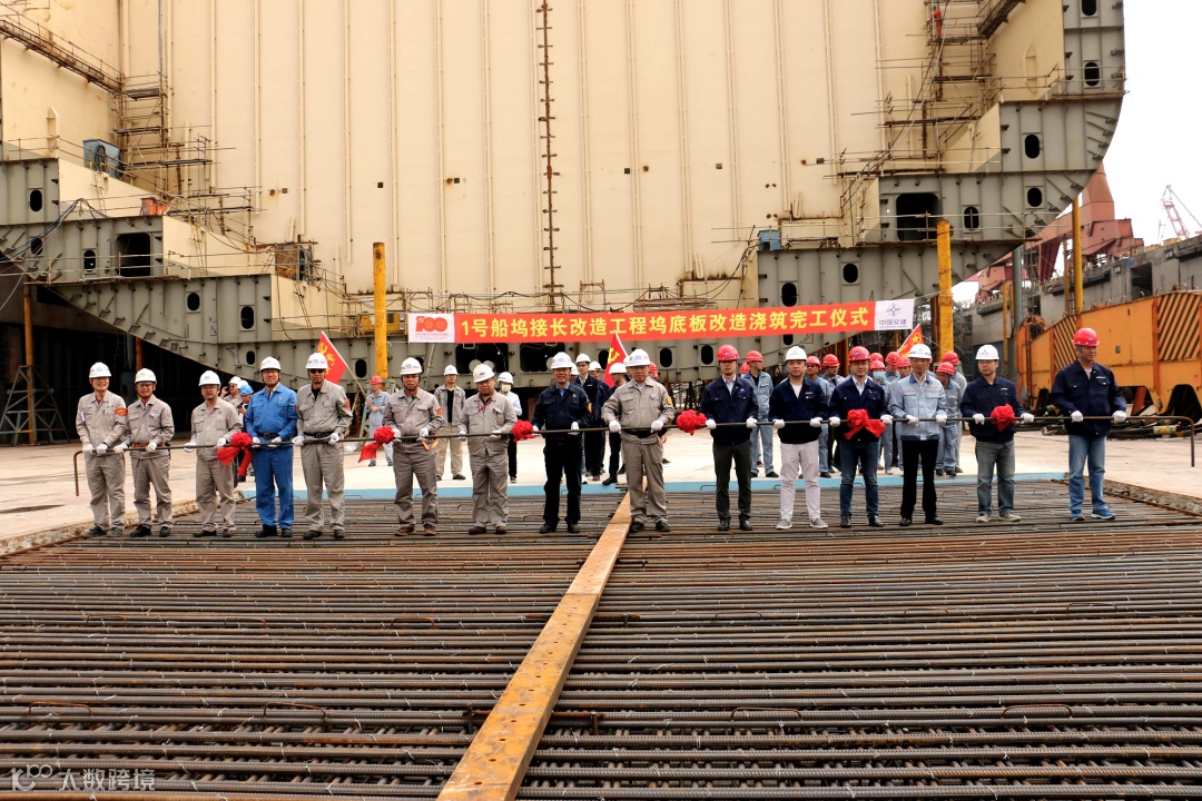 近日,公司长兴造船1号船坞接长改造工程坞底板改造浇筑完工仪式顺利举行,标志着1号船坞老坞底板改造段施工全部圆满结束。公司长兴造船党委书记周德寿、副总经理胡宏宇、公司基建总监朱益民和中船九院、中交三航、振南监理等相关领导出席仪式。