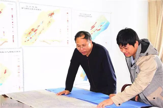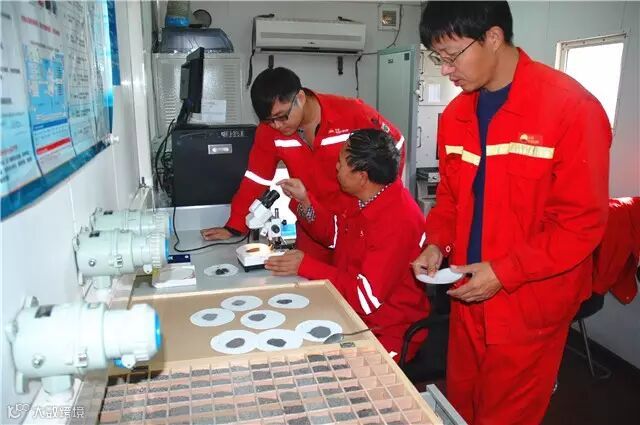 林专家在红33井现场利用放大镜,进一步确定岩性,指导技术人员下一步工作方向。