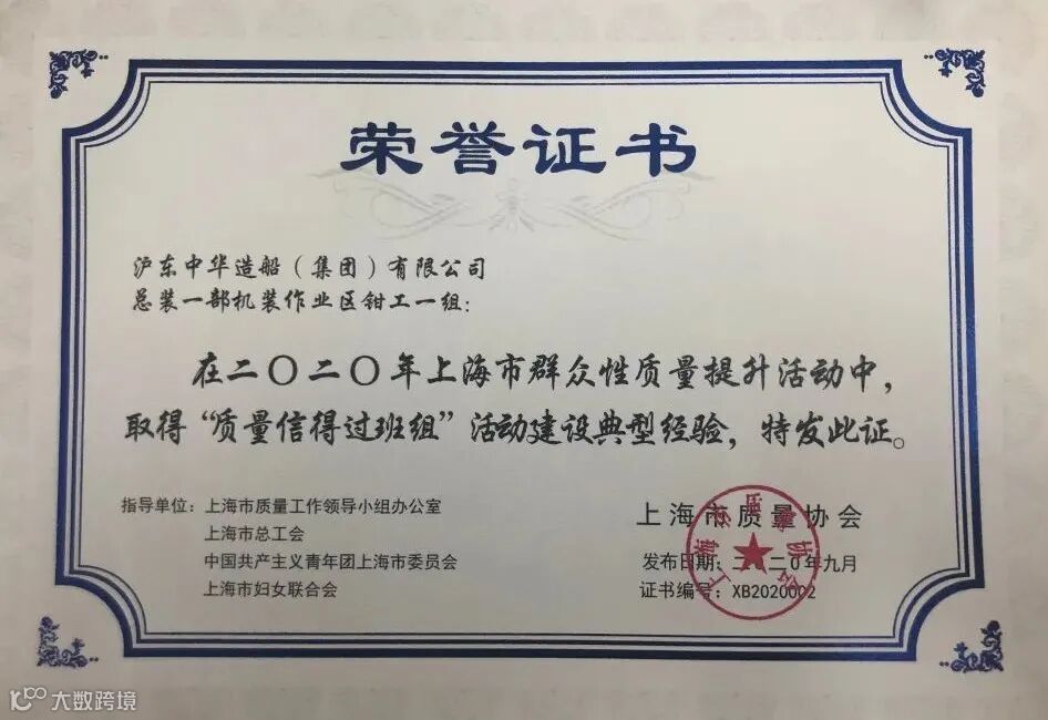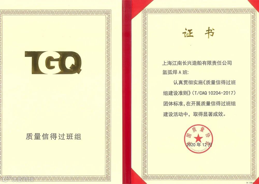 近日,从中国质量协会传来喜讯,公司总装一部钳工班组、总装四部氩弧焊班组作为上海地区船舶行业唯一入围发表赛班组,以扎实的基础管理、特色的班组文化及良好的精神风貌,一举斩获全国 “质量信得过班组”称号。