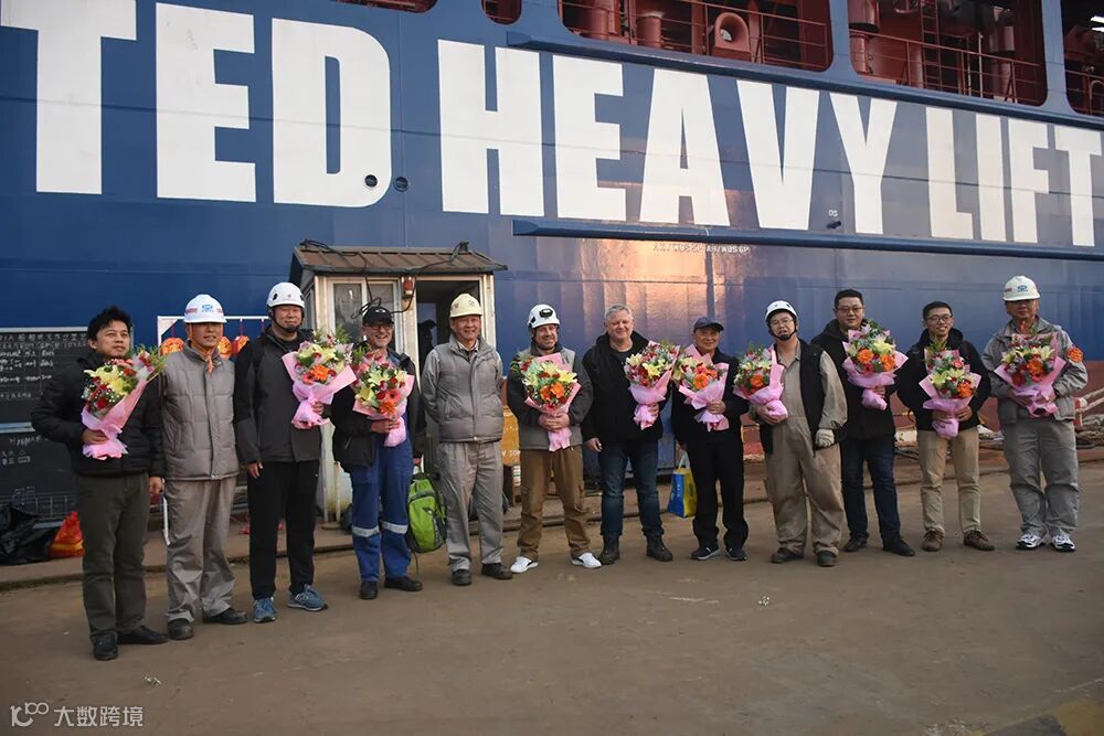 12月3日下午,优化型13000吨重吊船首船试航凯旋, 4天高质量高强度高效率海试圆满完成,得到船东高度好评。公司军品副总建造师、总装三部部长陆方东到现场为船东船检及试航员工送上鲜花,祝贺试航成功。