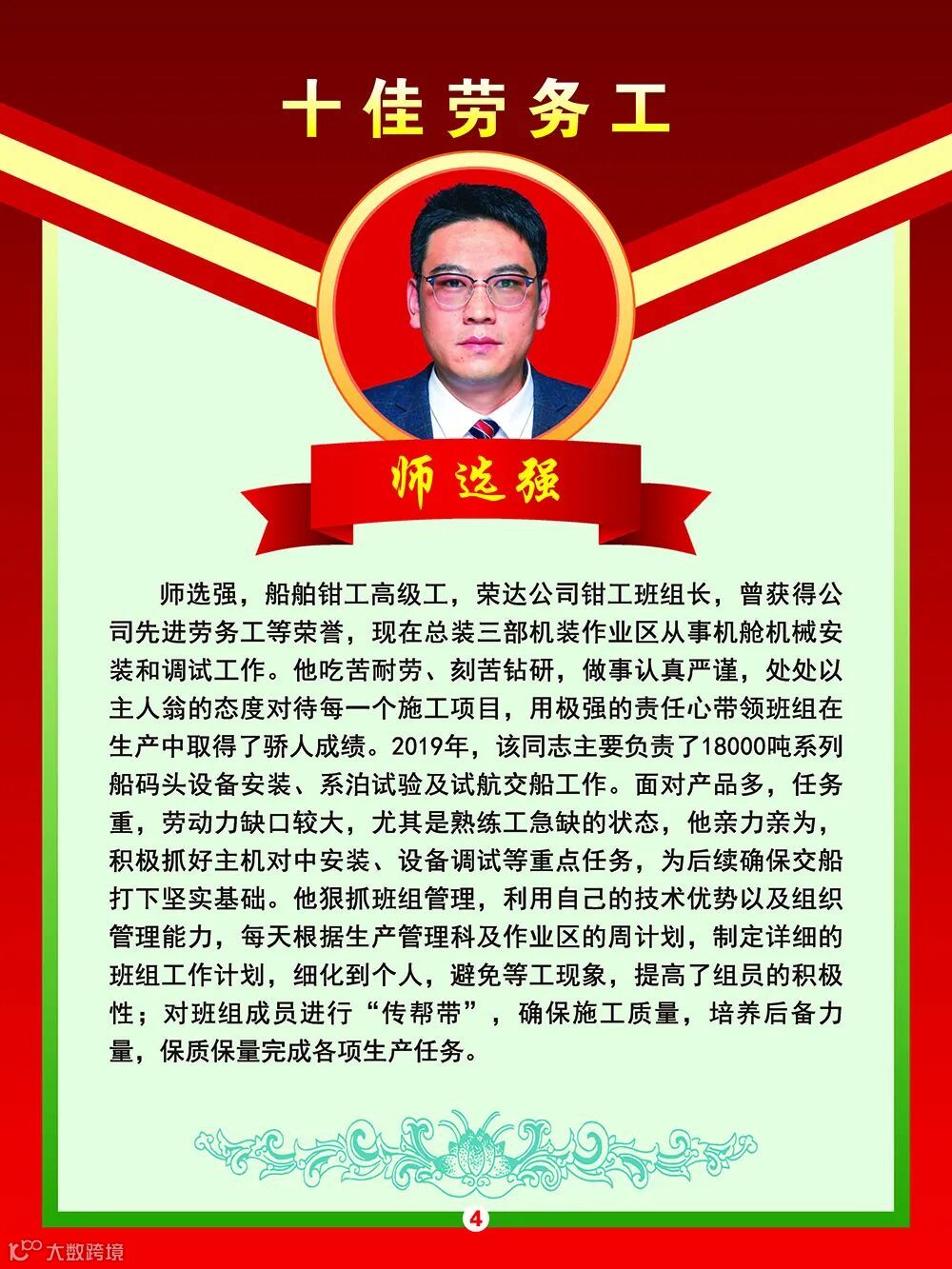 “五一”即将来临,这是全体劳动者的神圣节日。劳动最光荣,奋斗最美丽,让我们向辛勤奉献的劳动者致敬。今天起,公司微信公众号将陆续推出“十佳管理者”、“十佳员工”、“十佳劳务工”的简介和先进事迹。他们迎难而上,努力拼搏,用汗水和奉献书写军工人的尽责担当,打好疫情防控阻击战和生产经营保卫战,取得了优异的成绩。