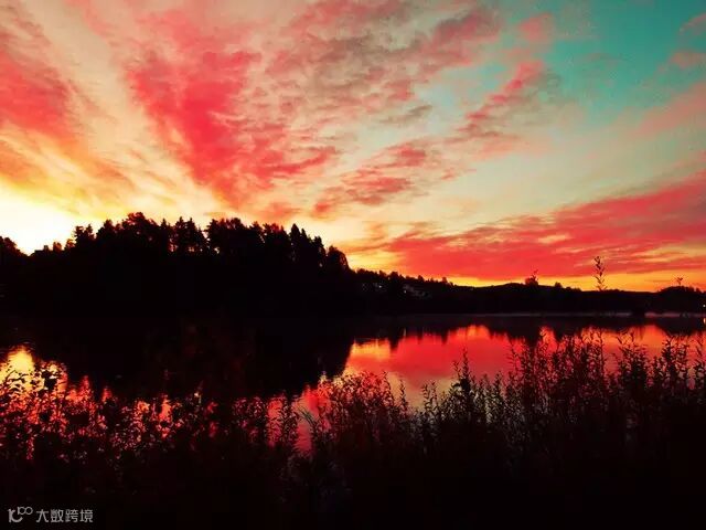 婀娜的晚霞,韵动的心跳,配上零星散落在崖边的野花