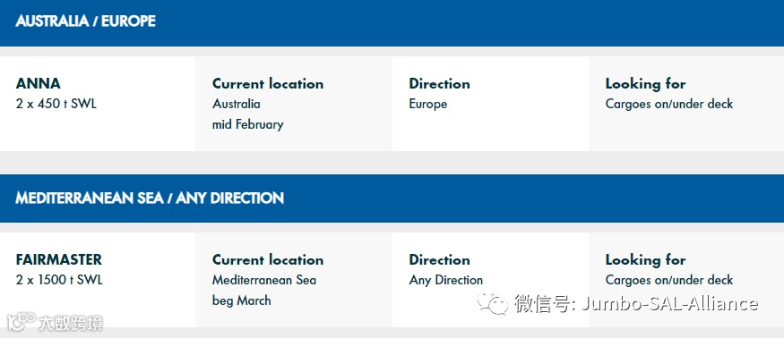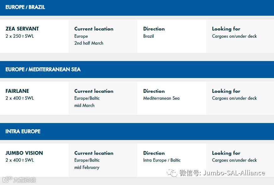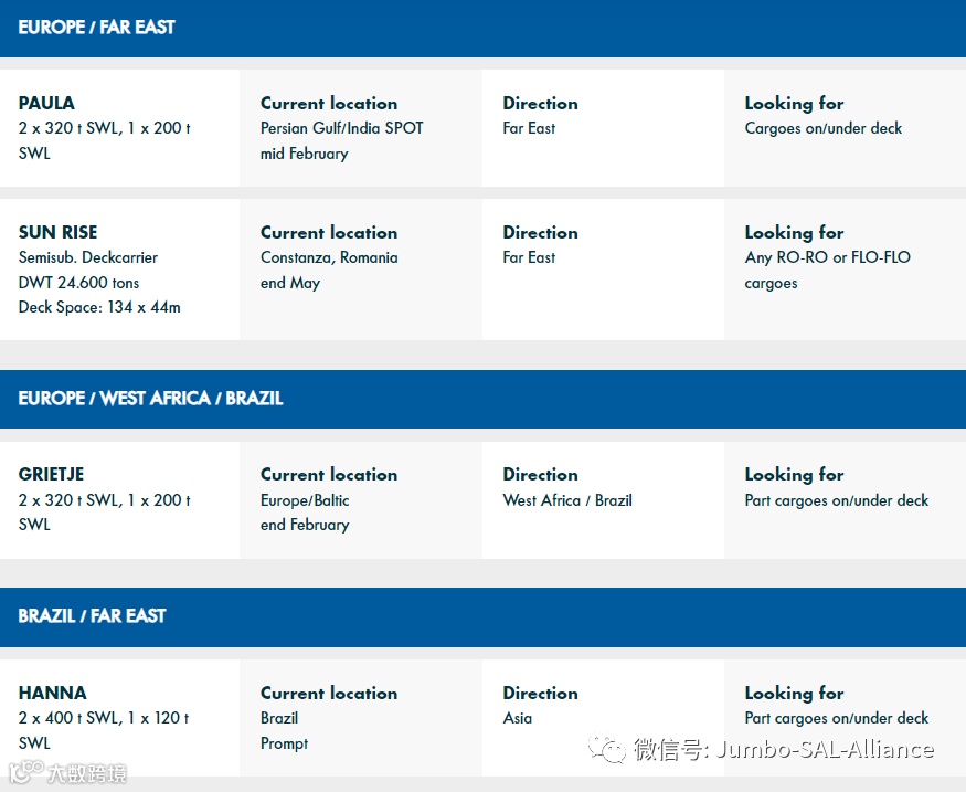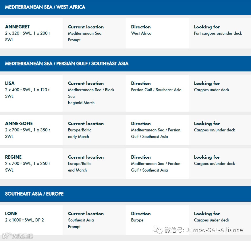 Find out where our vessels currently are and what space is still available on this week’s Jumbo-SAL-Alliance position list: