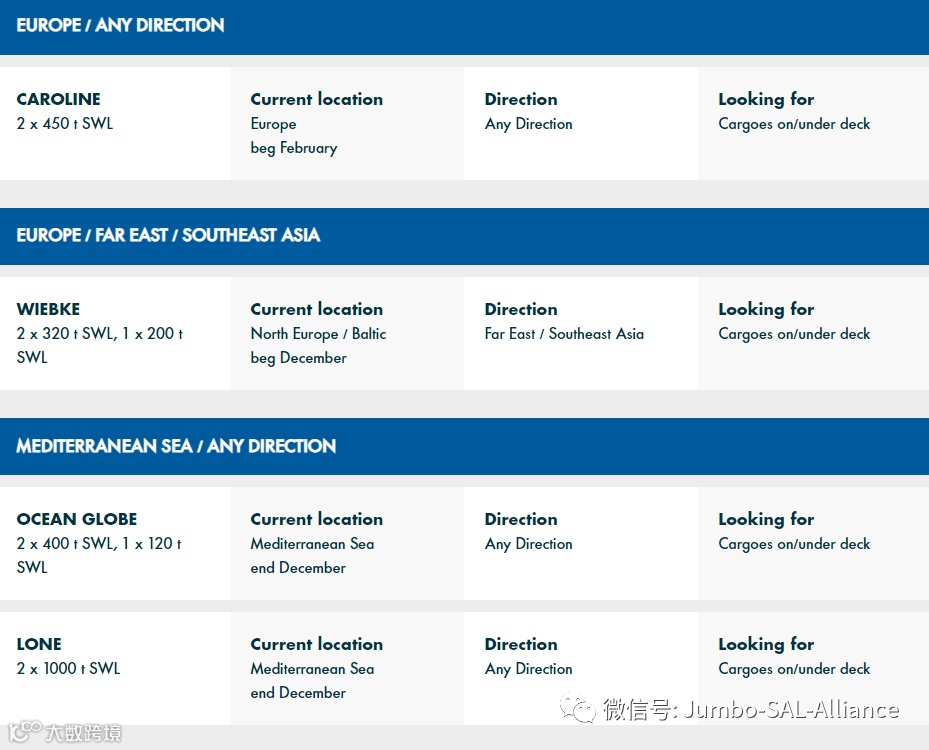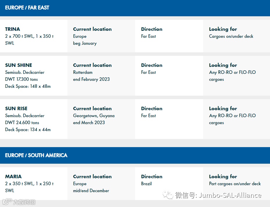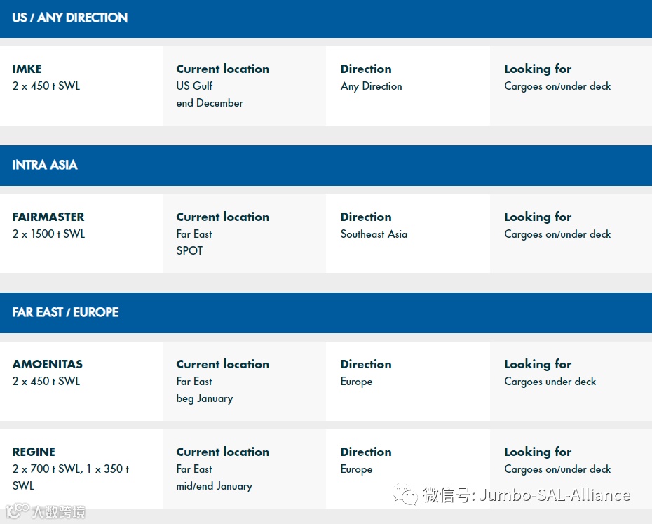 Find out where our vessels currently are and what space is still available on this week’s Jumbo-SAL-Alliance position list: