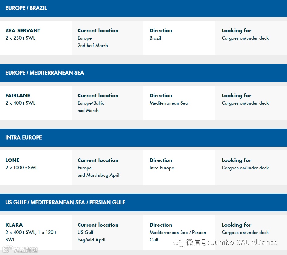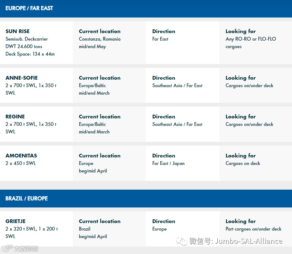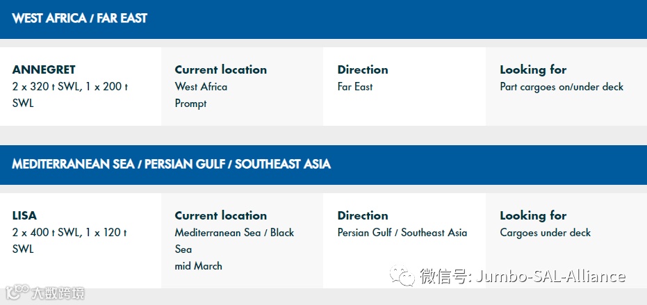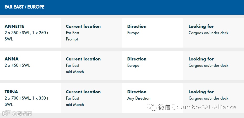 Find out where our vessels currently are and what space is still available on this week’s Jumbo-SAL-Alliance position list: