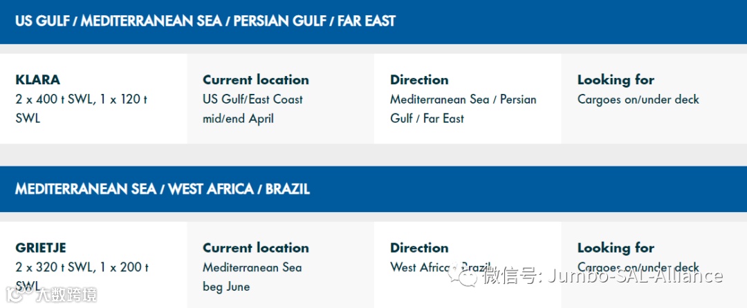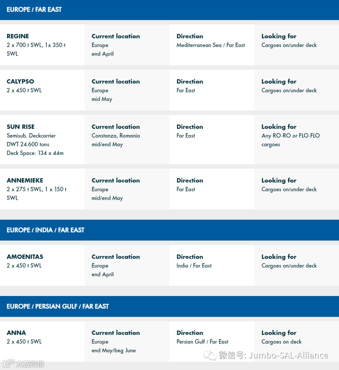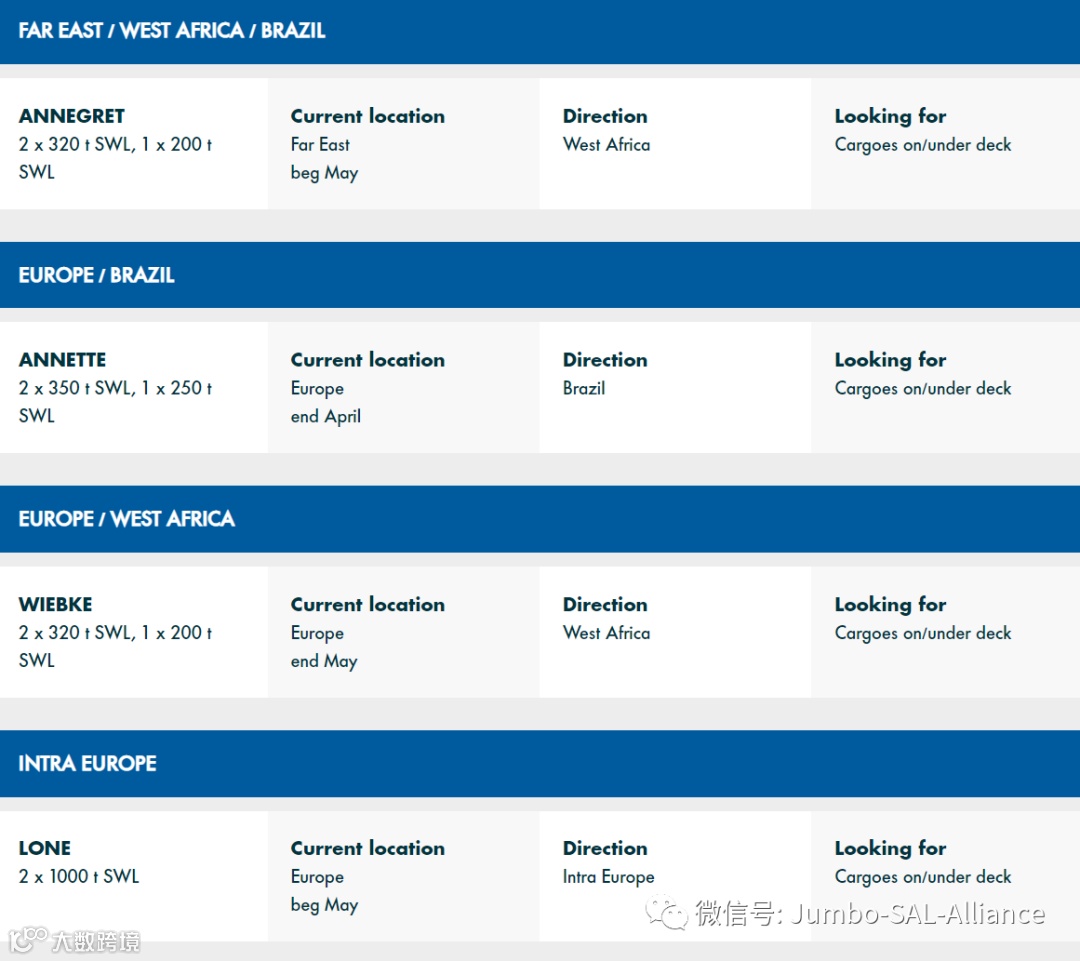 Find out where our vessels currently are and what space is still available on this week’s Jumbo-SAL-Alliance position list: