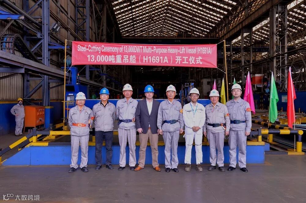 11月12日,13000吨重吊船7号船开工。公司常务副总经理黄一平、军品副总建造师陆方东,船东代表出席了开工仪式。