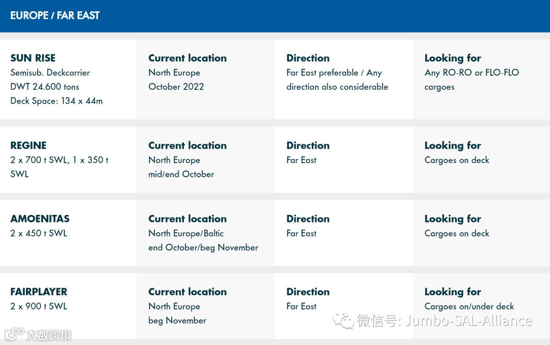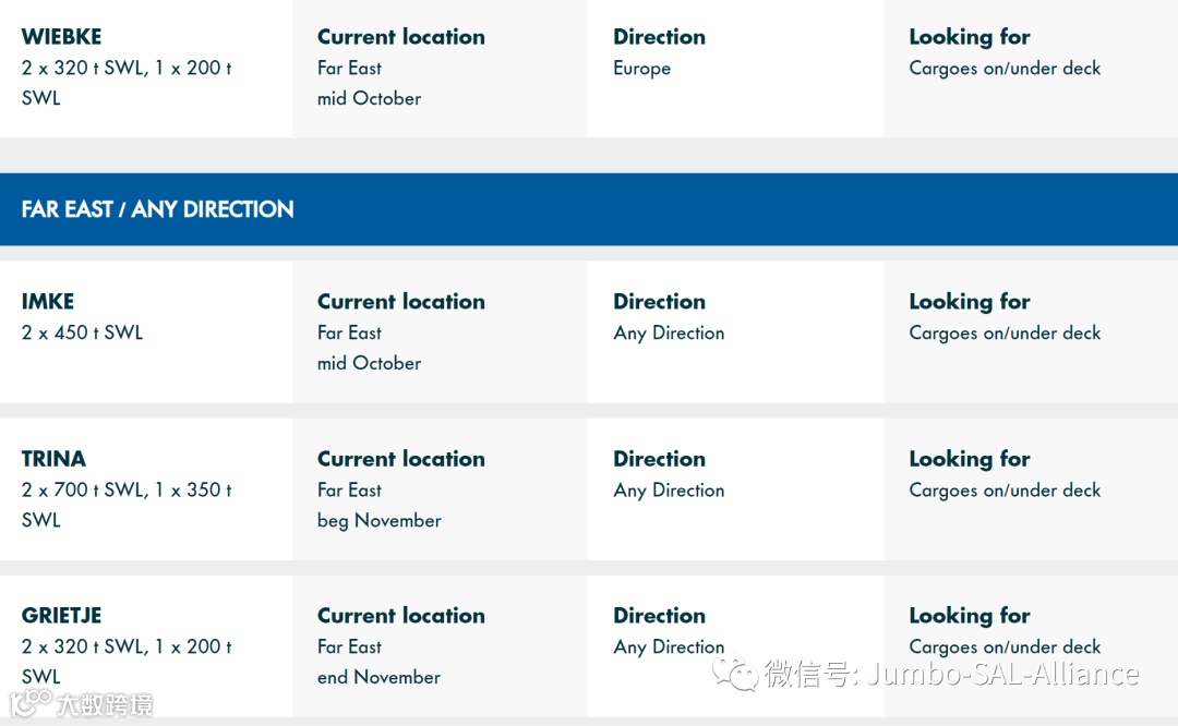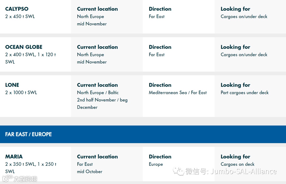 Find out where our vessels currently are and what space is still available on this week’s Jumbo-SAL-Alliance position list: