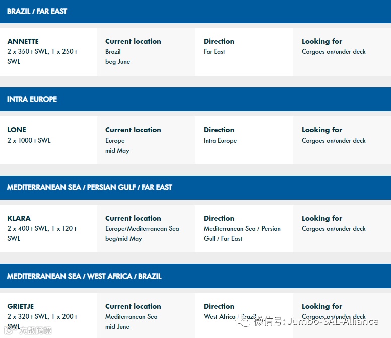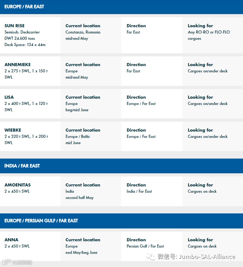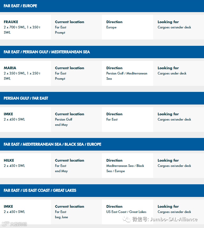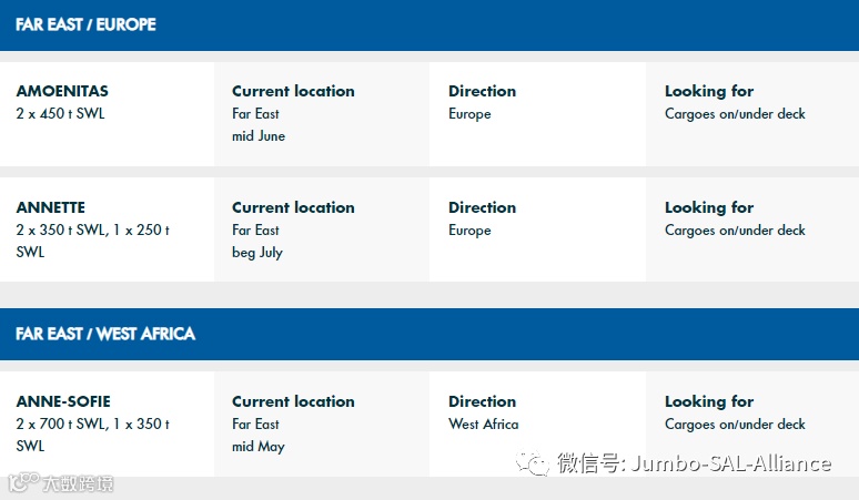 Find out where our vessels currently are and what space is still available on this week’s Jumbo-SAL-Alliance position list: