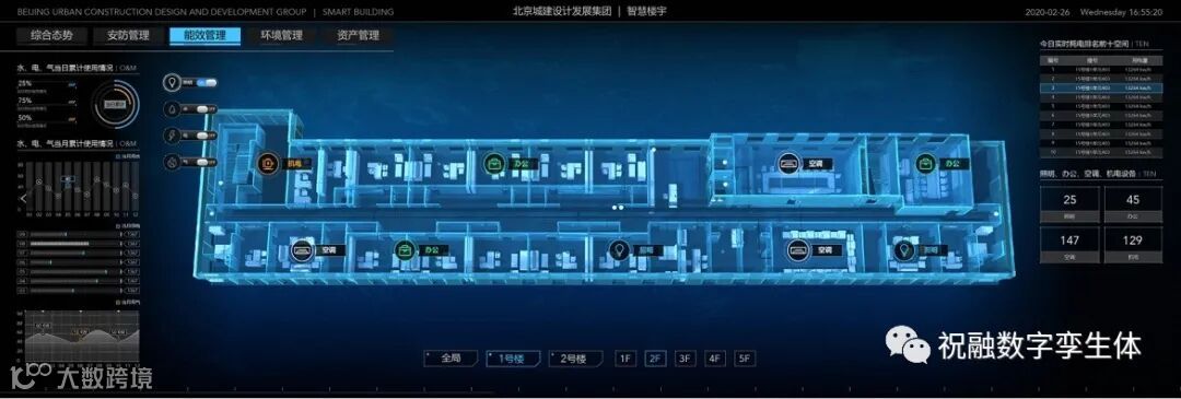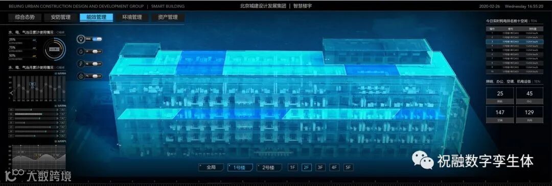 祝融科技作为国内领先的数字孪生引擎开发商,针对当代园区管理的需求痛点,在园区建设的5A系统的基础之上,结合3D/GIS/BIM等空间数据资源,利用数据分析、综合可视化等手段,运用数字孪生体思想,将多维采集的信息进行融合,形成全方位可视化以及包含智能分析预警的园区基础设施云平台,实现基础设施的高效率和高安全性的运行,对于园区内基础设施可能产生的损耗和故障能做到智能分析、提前警报,实现基础设施的高效使用和管理。