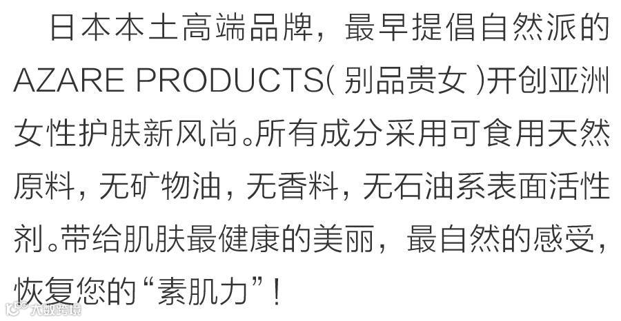 AZARE-PRODUCTS会社于1977年在日本大阪创立,是首个生产无矿物油,无石油系表面活性剂,无香料的零添加化妆品公司。2013年面向海外创建veppin品牌"别品",该品牌以打造女性的自然美肤为己任,正在逐步引领新的世界性护肤风尚。