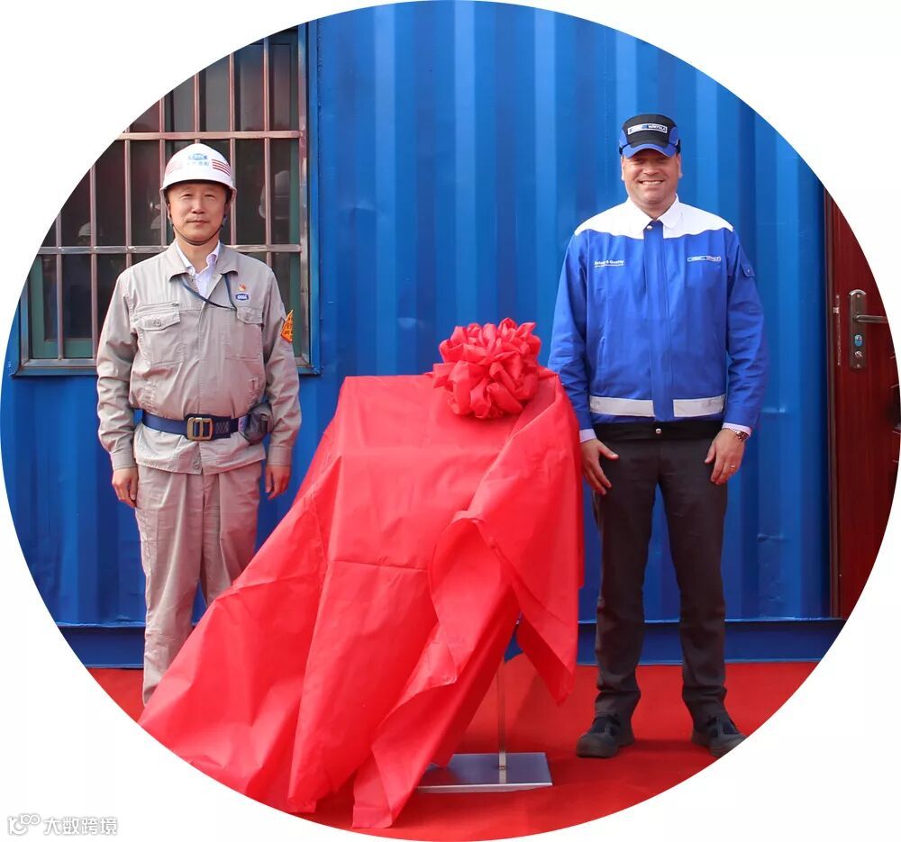 长兴造船副总经理刘学东、中船瓦锡兰发动机(上海)有限公司总经理Jonny Nylund为现场服务站揭牌。