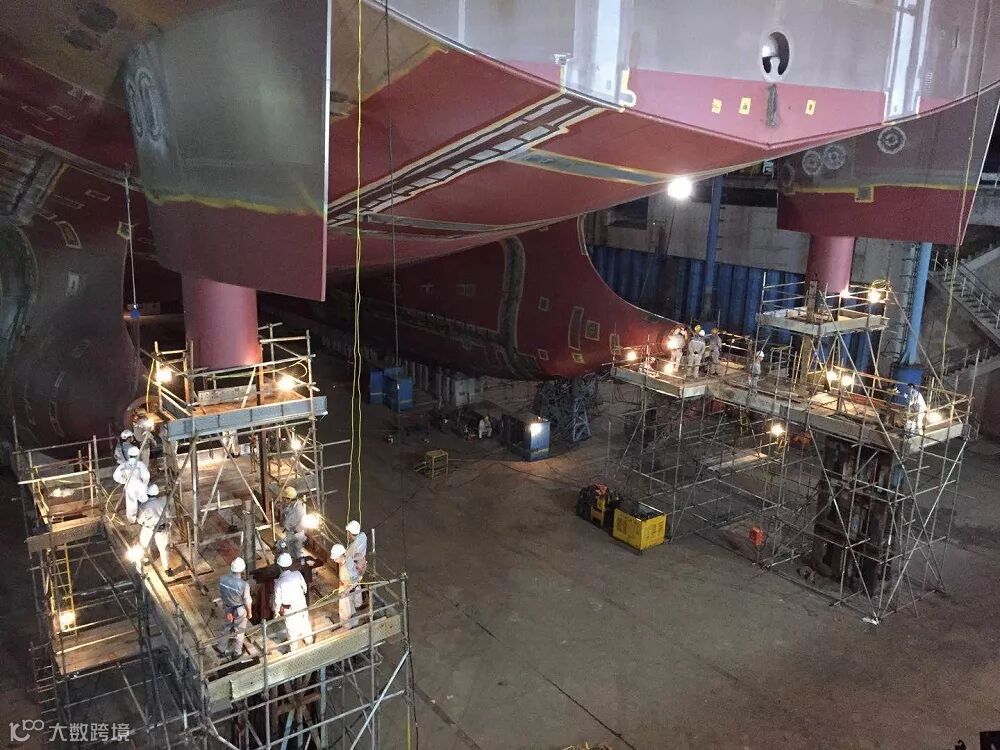 9月20日,13500箱集装箱船8号船顺利出坞, 标志着该系列船完成全部船坞建造阶段。