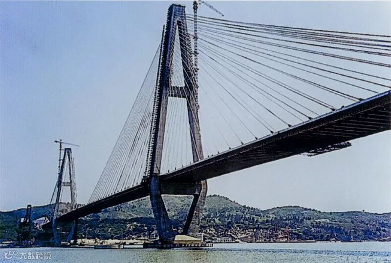 青州闽江大桥位于福建省福州市至长乐的闽江上,为双塔双索面钢梁与钢筋混凝土预制板相结合的迭合梁斜拉桥。该桥为三跨连接工字钢组合钢梁,正桥长1185米,主桥跨605米,正桥面宽29米,主塔高175.5米,通航净空43米,工程净重量9313吨。该桥长度在世界大跨度斜拉桥中排名第五,而在同类型桥梁中位居世界第一。